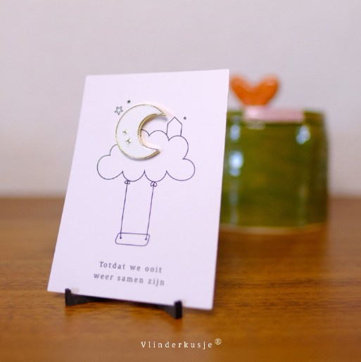 Troostkaartje met prachtige pin in de vorm van een maan.