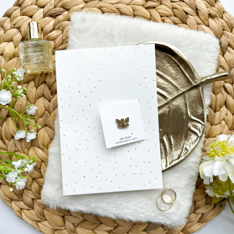 Deze gouden mini vlinder pin is een subtiel en liefdevol cadeautje dat recht uit het hart komt. De vlinder staat symbool voor liefde, kracht en verandering, een prachtig gebaar voor iemand die je dierbaar is.