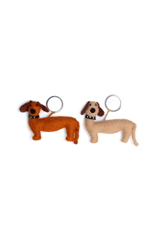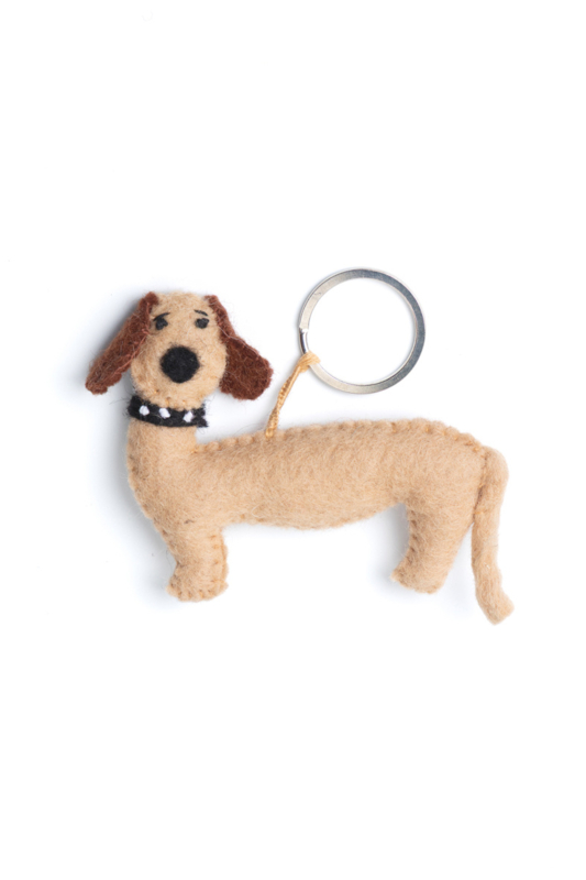 Vilten sleutelhanger tekkel, duurzaam & Fairtrade cadeau.