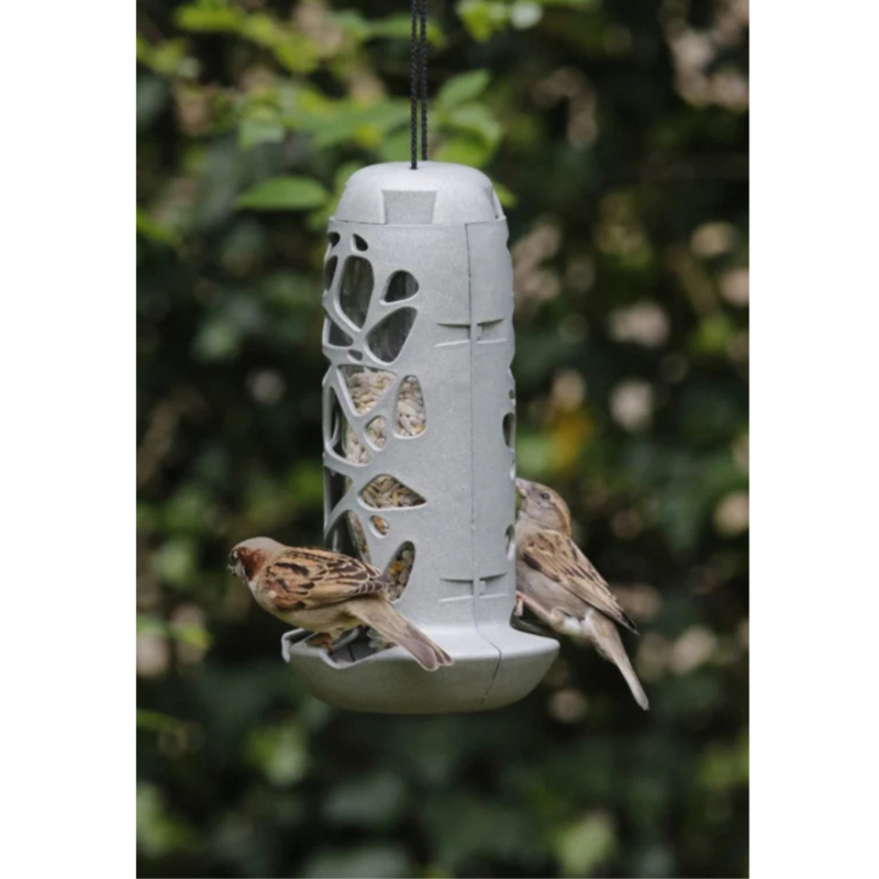 En dat alles doet deze voedersilo zonder de aarde te belasten, de Tara vogelvoedersilo is geheel gemaakt van gerecycled materiaal.